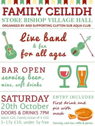 Clifton Sub-Aqua Club (CSAC) a branch of the British Sub-Aqua Club (BSAC) are organising a Ceilidh. CSAC is a friendly dive club based in Bristol. We are a volunteer club by our members for our members, training divers of all grades from our entry level, ocean diver all the way up to instructor level with the BSAC. We are hoping to raise some money for new equipment so we can train more divers in the future, widening participation!