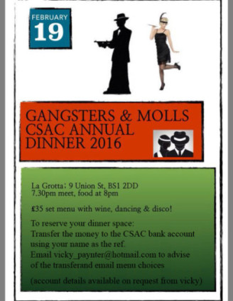 However a few pertinent points- It’s to be on Fri 19th Feb Venue is La Grotta; 9 Union St, Bristol BS1 2DD. This is a cosy Italian Restaurant with a bar and disco downstairs. Theme is Gangsters and Molls; so ladies grab your feather boas and gentlemen your machine guns!!
