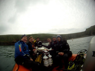 6 of us had a fantastic weekend in Pembrokeshire diving around Skomer Island marine reserve staying a launching from Broad Haven. Day 1 consisted of a failed attempt to locate the wreck of the MV Lucy. After trying all the best surface search techniques we gave up to dive Rye Rocks instead. This was a great back up!! The Scenic drop offs to over 35m were hive of marine life activity. All watched on by some friendly seals. The second dive consisted of the Garland Stone. Again a fantastic scenic dive with drop offs to over 40m. The pinnacle that we were dropped in on whilst initially been quite kelp gave way to fields and fields of muscle beds. The majority of the muscles had died back given the time of the year. The shells however made great homes for velvet swimming crabs, lobsters, edible crabs and the occasional wrasse (of course!).